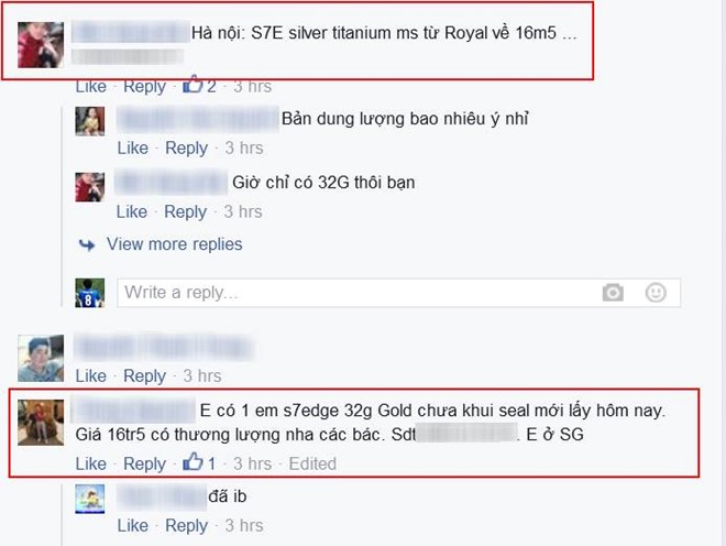 Nhiều người rao bán Galaxy S7 edge trên mạng xã hội trong chiều 18/3.